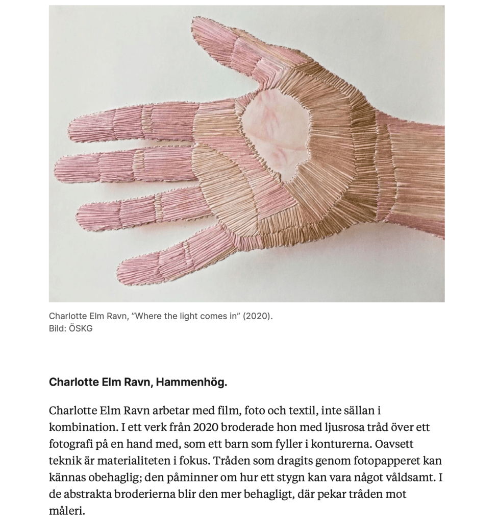 Christine Antaya, konstkritiker i Sydsvenska Dagbladet, tipsar om ett besök hos mig under Konstrundan 2023. Verket på bilden är sedan länge sålt och visas inte under Konstrundan.