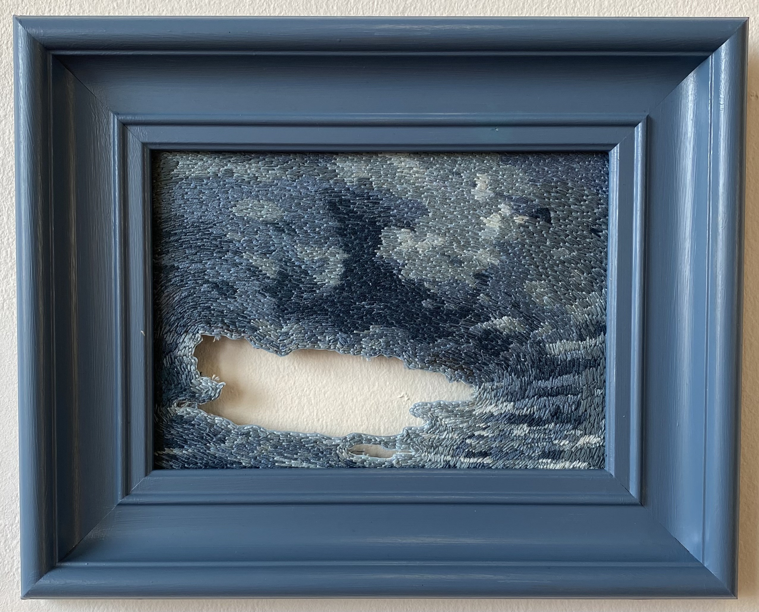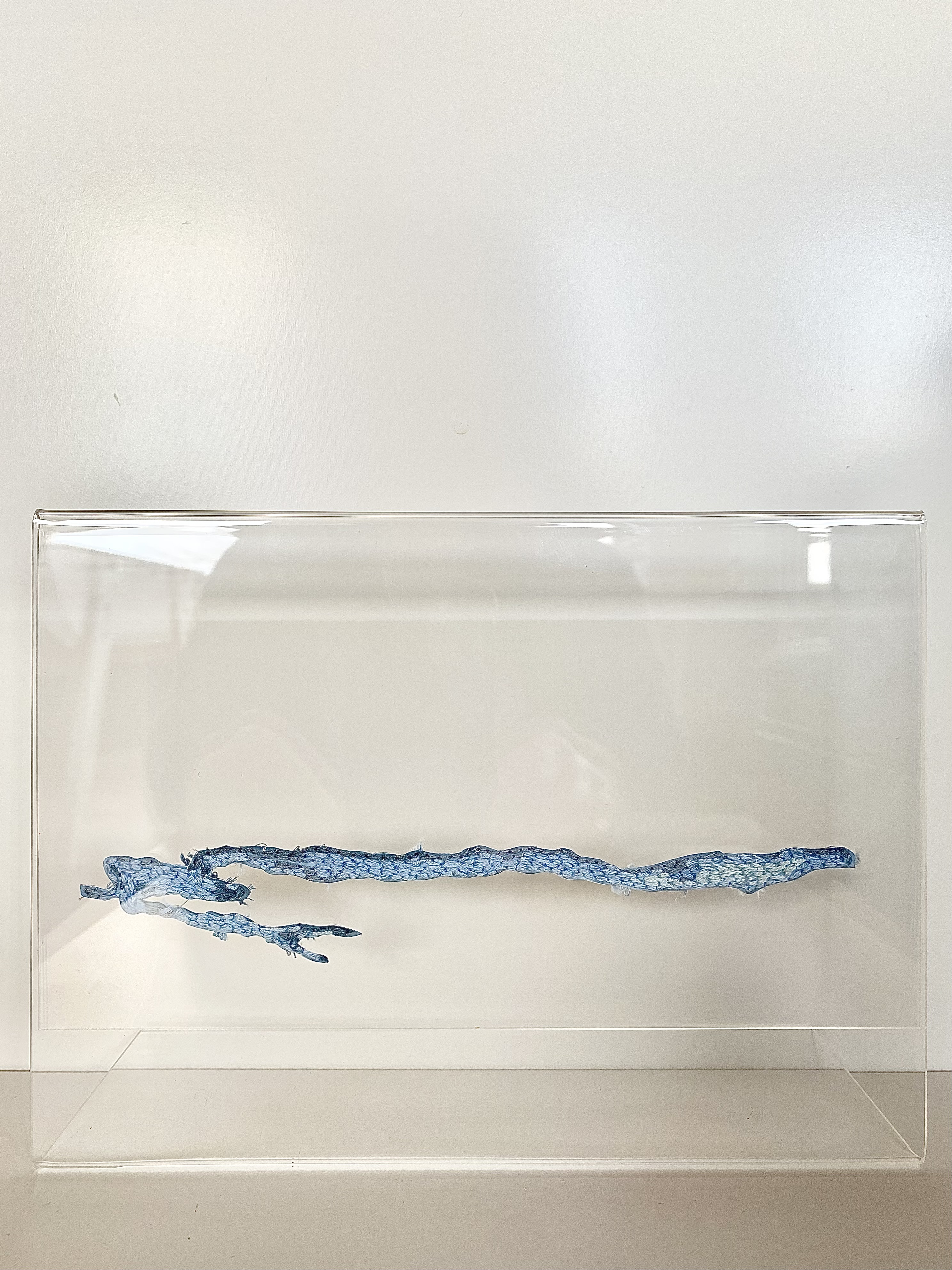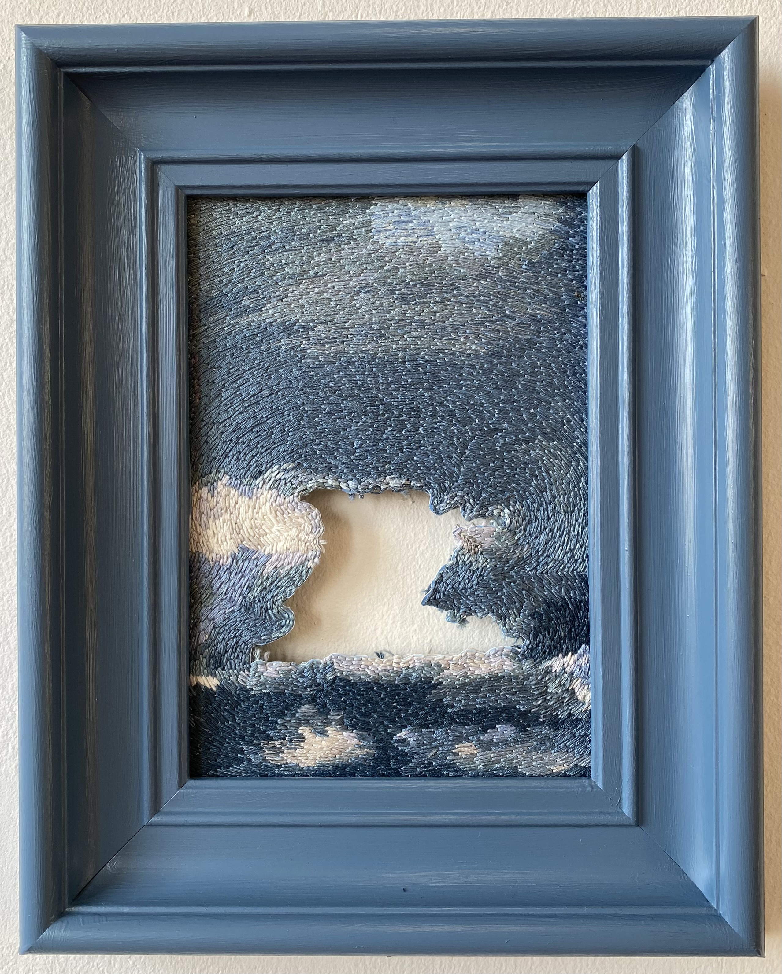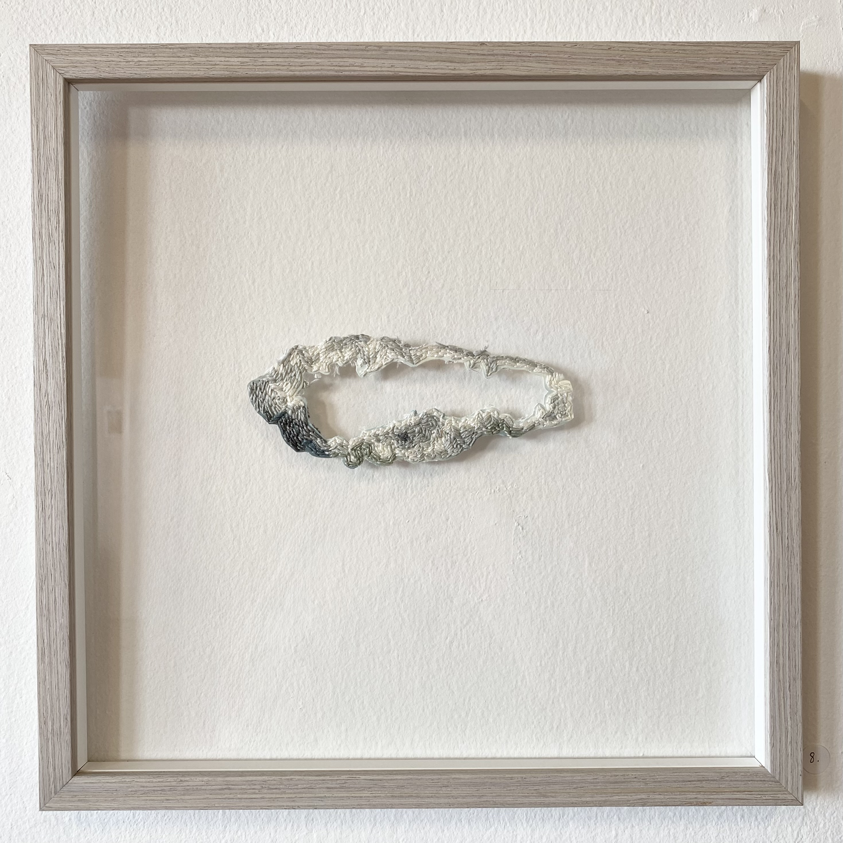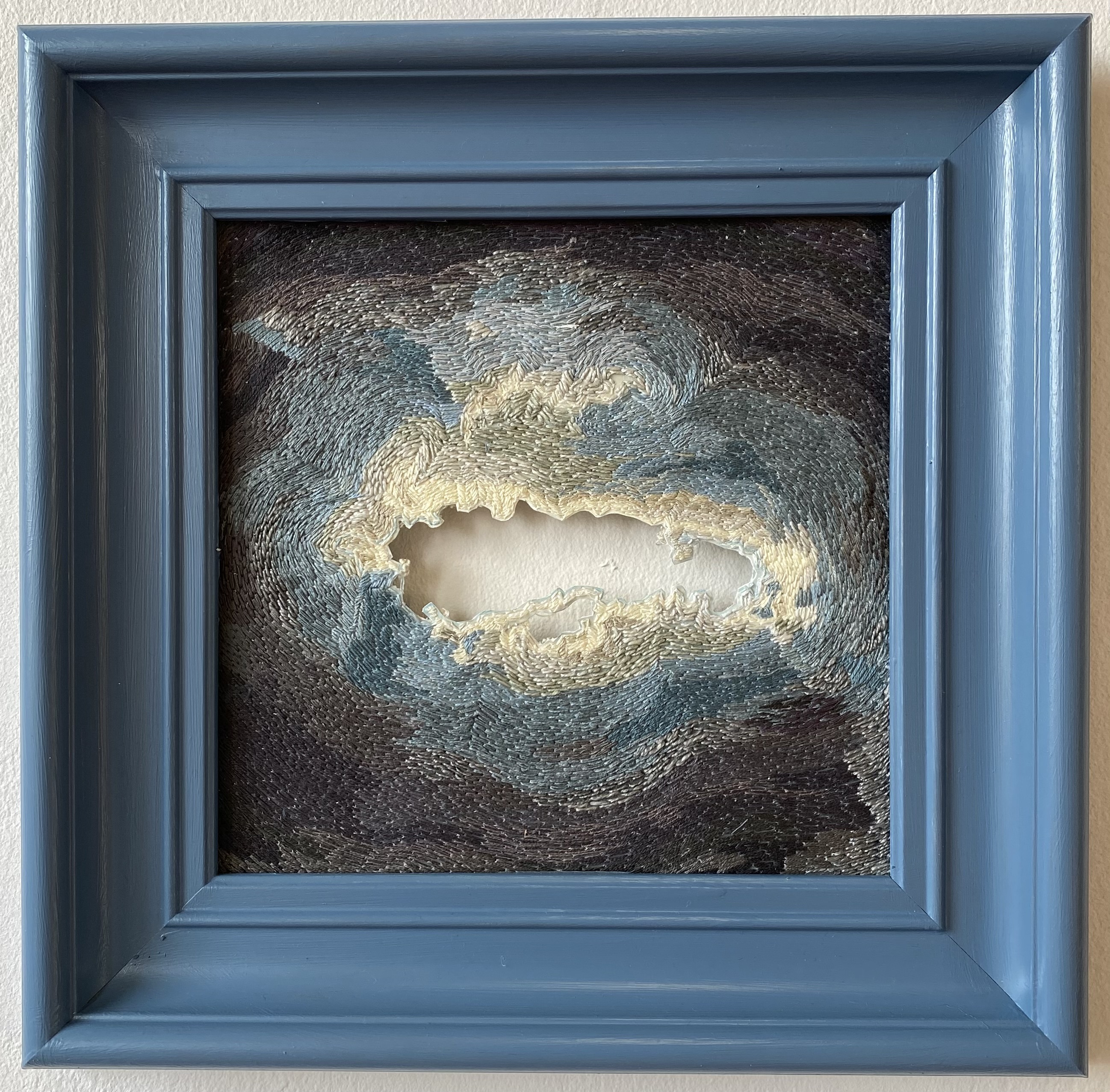 ”A crack is everything” #1-4, 2026 – broderi på fotografi (utskuret och monterat mellan glasskivor), 32 x 32 cm