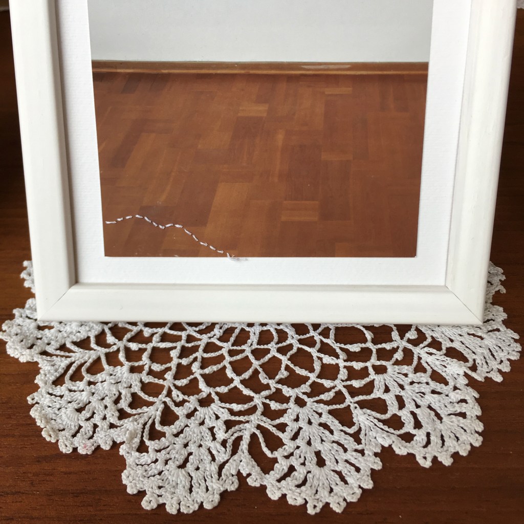 Transition Exhibition view, studio, Septemberutställningen 2020 Installation, 2020 Teak desk, 20 st framed embroidered photographies 10 x 15 cm, crocheted tablecloths Video, 2020 Pictures Photography, gouache, 40 x 50 cm cut out Photography, gouache, 40 x 50 cm cut out Photography, embroidery Photo relief, 2018 Photography, foam board 5 mm, 100 x 20 cm Relaterade Typ: artEtiketter: photo art Lämna en kommentar
