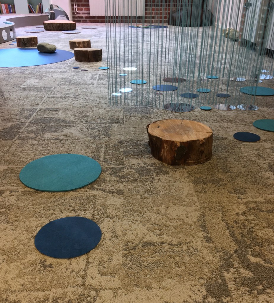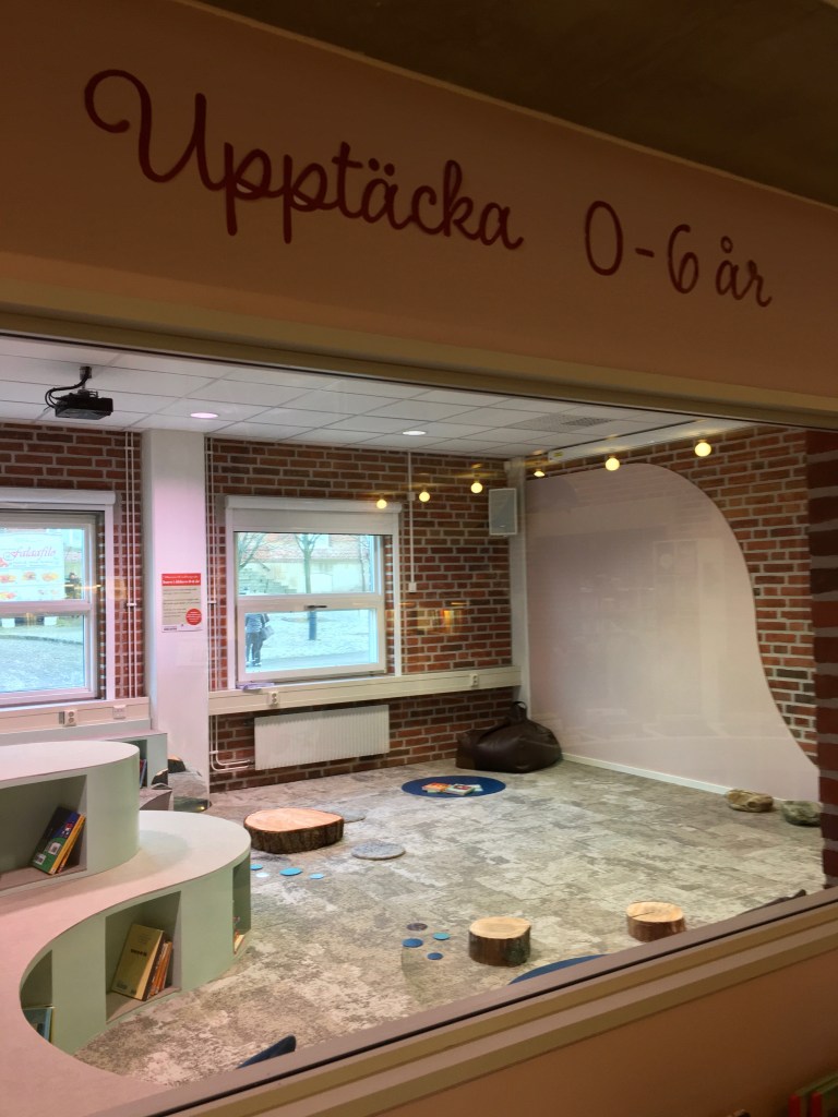 Nytt rum för barn på Simrishamns huvudbibliotek med utgångspunkt i Reggio Emilia-inspirerade teorier om miljön som den tredje pedagogen och ”öppna material” samt biofilisk design och ekologiska värderingar.