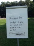 The starting-point was a public space outdoors in the city, that was to exchange in an open and investigative process. Me and Herman gave the opportunity to the participators to choose between four different places. They chose a kind of park. In two days the participants investigated the place through different exercises – listening and collecting sounds, blindfolded bodywork, observing and drawing. We also made a trip to Marsvinsholms sculpture park. It all ended up in a sort of book-park, with a a special book hanging from every single tree, free to anyone to sit down under the tree and read. We also invited people to a night event, reading together in the dark with a headlamp and a cup of tea or coffee.