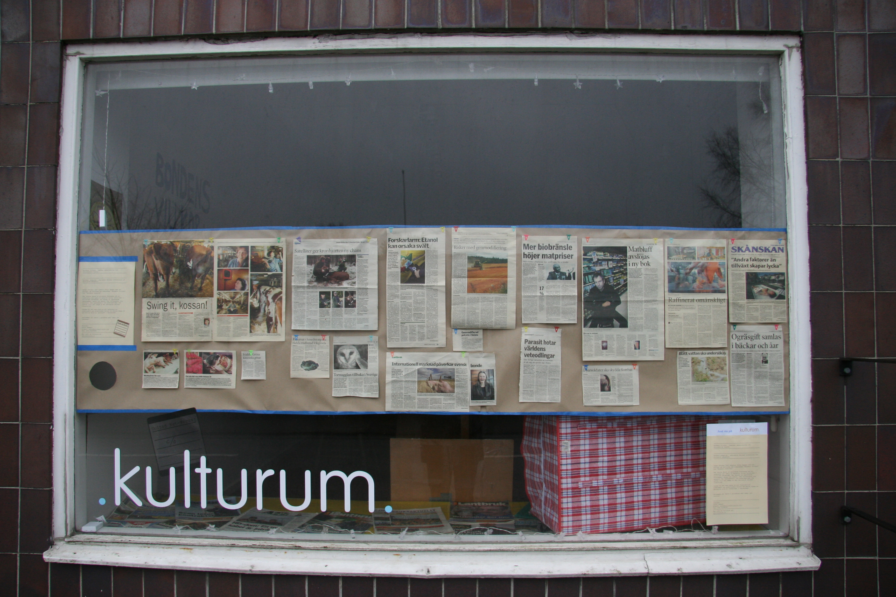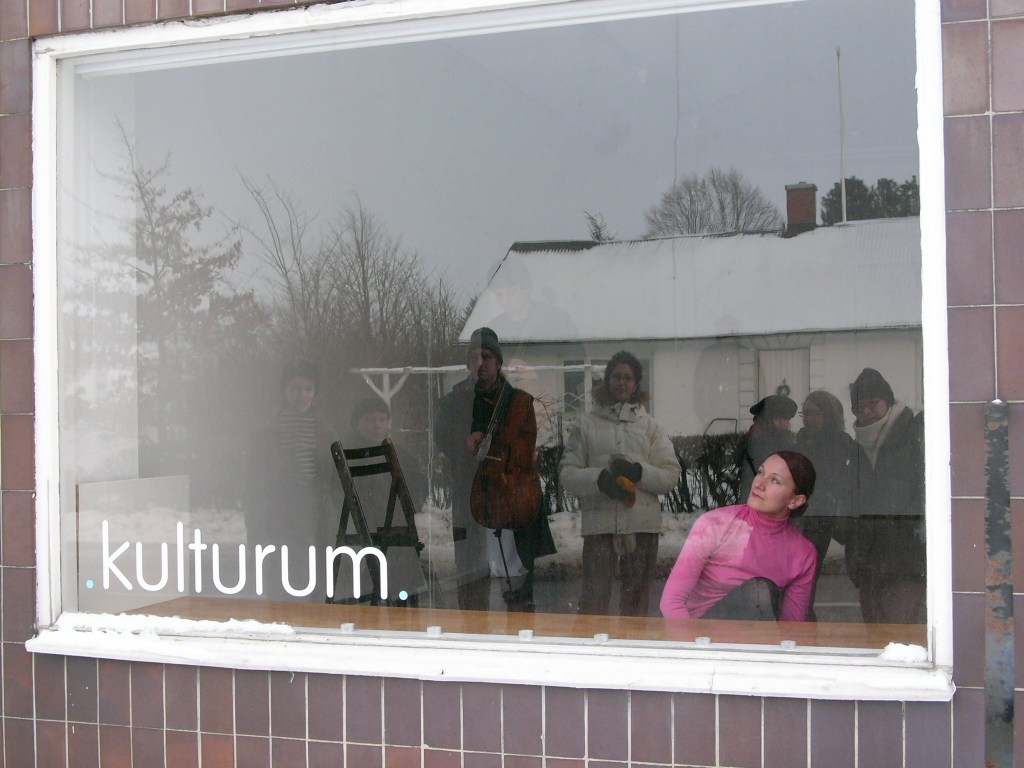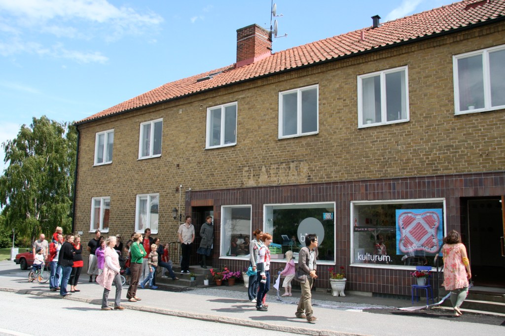 ” … The most significant with Kulturum is the allowing and curious atmosphere in all projects and activities. The association started 2005 with the purpose to open up the old shop at Ystadsvägen for projects and artistic investigations. Kulturum has presented visual arts and installations by international artists and also theatre and music. The ambition has always been high, without being pretentious. And just because of that, the small room has felt very airy, open for a bigger world. It is not the self-righteous, urban, cryptic art, that put it self upon the village, but an art that seeks to establish a meeting point where everybody can meet themselves and each other in an open dialogue. (…)